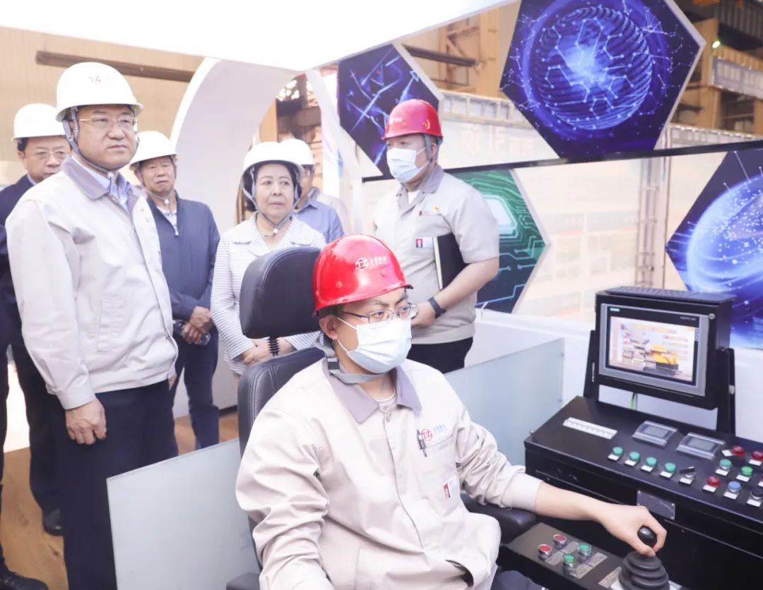 在矿山、起重机分公司,胡苏平实地参观了大型5G电铲智能化远程操作室、液压挖掘机、大型矿卡及550吨铸造起重机装配调试现场,赞赏太重生产的产品不愧是“大国重器”,要持续提升高端装备制造水平,全面增强企业活力,积蓄企业发展动能。