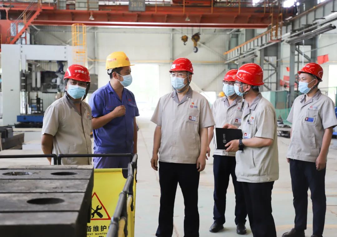 7月13日下午,集团公司党委书记、董事长韩珍堂赴太重煤机园区生产一线调研,在工程机械公司挖掘机总装车间、冶金设备分公司搬迁项目现场及安居建设公司钢结构厂详细了解新产品装配、搬迁改造进度和钢结构生产供应等情况,对夜以继日、辛勤付出的一线职工表示感谢。