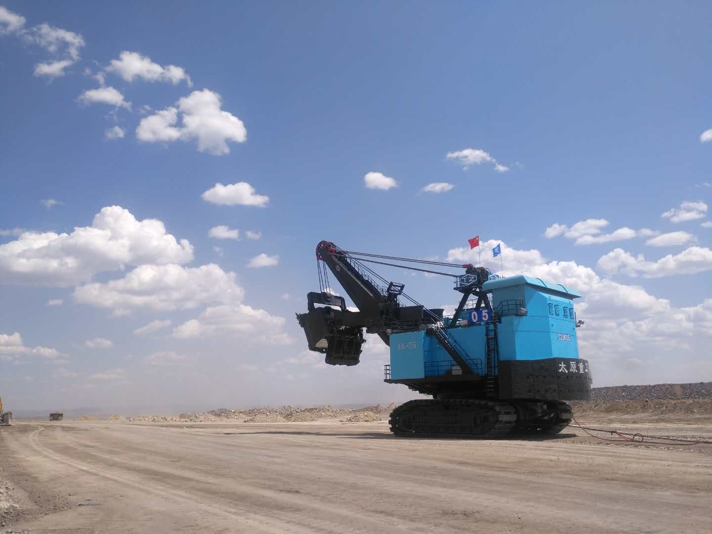 近日,从矿山设备分公司准格尔 WK-55电铲现场安装项目组传来好消息:在疫情防控的特殊时期,项目组全体成员肩负使命、攻坚克难,历时 61 天,提前一周完成现场安装调试任务!意味着又一台“TZ”牌世界第二大矿用挖掘机巍然屹立在了准格尔黑岱沟露天矿!