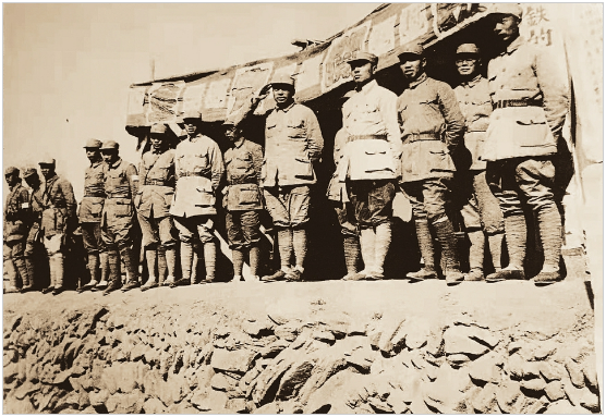 1940年4月13日,黎城会议期间,八路军首长在黎城孔家峧阅兵照(资料图片)。