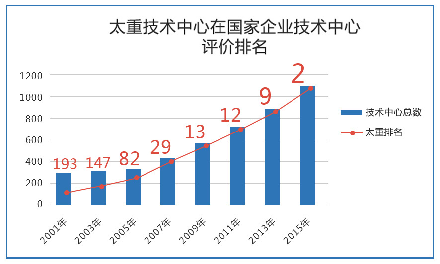 太重技术中心在国家企业技术中心排名逐年上升